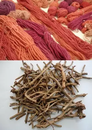 另一类植物染料是茜草科茜草属的几个物种,它们的根部富含茜素红及红紫素,需要媒染剂才能染得牢靠,但胜在分布广泛,“茜”字在汉语里同样也有红的意思。