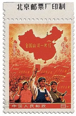 1968年为纪念文化大革命发行的“全国山河一片红”邮票,后因版图轮廓错误停发,2012年以730.25万人民币的价格嘉德春拍成交,创国内单枚邮票拍卖纪录