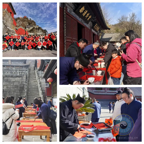 2025年1月15日至16日,武当山道教协会、武当山特区书法家协会在太和宫、紫霄宫、五龙宫、琼台中观开展“迎新春、送春联、送福字”活动,送出“福”字、春联1000多份。