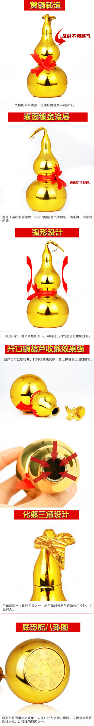 葫芦之所以具有那符招财、增感情、除病气化煞的功效,其原理为“内空外圆、开口聚气”,因此葫芦必须“内空、开口、上盖”才具备对应功效。